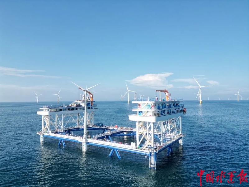 “伏羲一號”由廣州打撈局江門新會基地建造,業主為中廣核汕尾新能源有限公司,由中國能源建設集團廣東省電力設計研究院有限公司設計,是全球單體規模最大風漁融合網箱平臺,也是國內首個入級CCS的導管架式固定養殖平臺。
