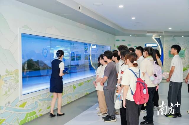 “海上的‘大風車’怎么立得住?”“核電站為什么喜歡‘住海邊’?”走進中國能源建設集團廣東省電力設計研究院有限公司展廳,同學們關于科技的好奇心被瞬間“激活”,無數問題便拋向講解員。在廣東省海上風電大數據中心里,實時跳動的風機運行數據、海流監測圖譜,將海上風電場的“神經中樞”的跳動具象化——這是他們第一次如此直觀地觸摸到“科技力”的脈搏……同學們通過聆聽講解、觀看視頻、觀摩模型、參與互動,深入了解廣東院在能源和基礎設施全領域的深耕力拓,體會每一次能源變革、技術創新的意義。